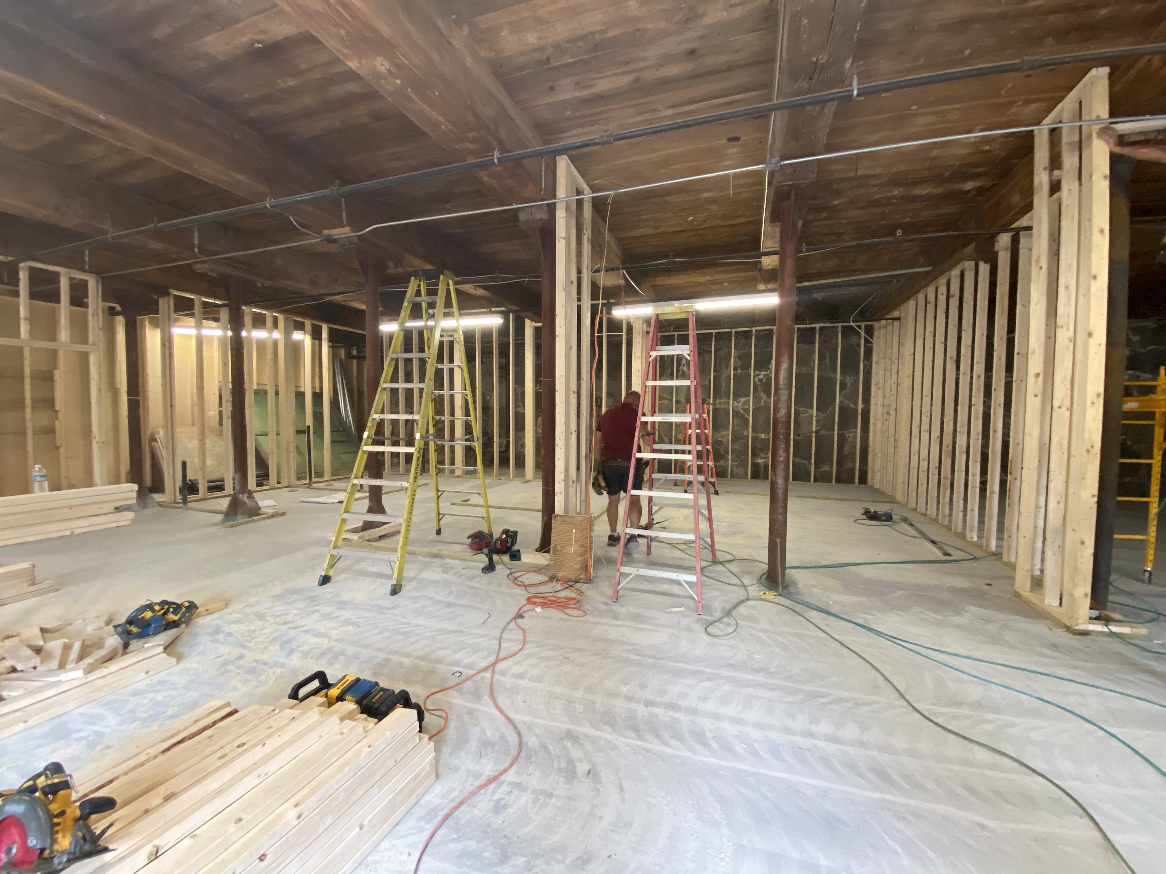 The exterior of the building will receive a modern facelift through historical methods. our masonry subcontractor, Wilder Construction, has begun cleaning and repointing existing brick, along with installing restoration bricks for spot repair. The masonry team was tasked with mixing natural hydraulic lime and sand to achieve an accurate and historical look at the existing lime-and-mortar joints.